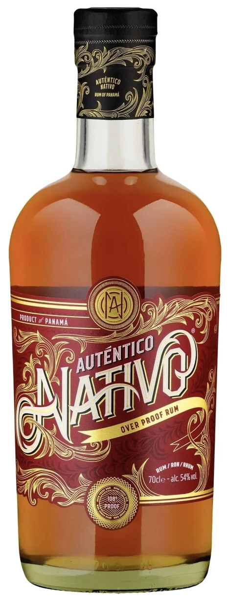 Ром Autentico Nativo Overproof — мощный панамский оверпруф-ром высокой крепости 54%, объёмом 0,7 л, для настоящих ценителей насыщенных вкусов. Создан из тростниковой патоки методом непрерывной перегонки с выдержкой не менее 8 лет (часто 10–12) в бочках ex-бурбон и мацерацией на шоколаде — пряный, пьянящий и многослойный, идеален чистым со льдом при 20–22°C как дижестив, с сухофруктами, твёрдыми сырами или в коктейлях типа Daiquiri для подчёркивания силы.