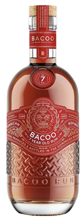 Ром Bacoo 7 Years Old — премиальный выдержанный ром из Доминиканской Республики крепостью 40%, объёмом 0,7 л. Назван в честь мистического карибского духа "Баку", произведён из свежего тростникового сока с 7-летней выдержкой в бочках ex-bourbon — сочетает сладкую карамельность и пряную глубину, идеален чистым при 15–18°C или с имбирным пивом.