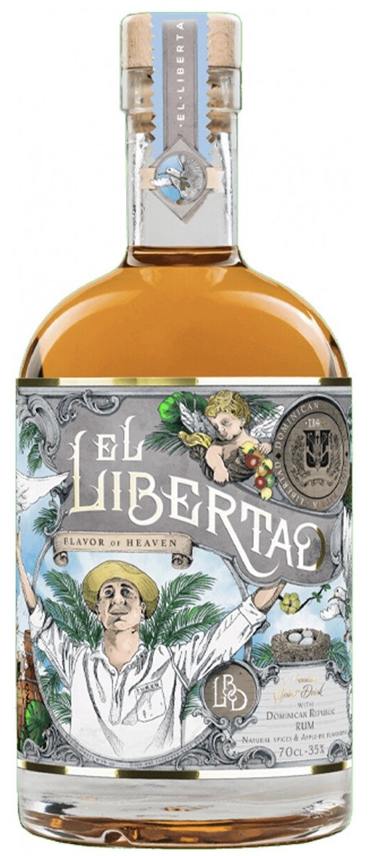 Ром El Libertad Premium Spirit Drink Flavor of Haven — изысканный ромовый напиток премиум-класса крепостью 35%, объёмом 0,7 л, с нежным золотистым оттенком и райским ароматом неба. Ароматизирован натуральными экстрактами яблока и корицы на базе доминиканских дистиллятов с выдержкой в бочках из-под портвейна — сладкий, бархатистый и уютный, идеален охлаждённым при 18°C чистым, со льдом или в горячих коктейлях для зимних вечеров и гурманов.