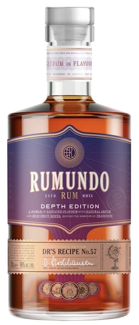 Ром Rumundo Depth Edition — премиальный золотистый ром крепостью 46%, разлитый в бутылке 0,7 л, созданный из сахарного тростника Ямайки и Доминиканской Республики. Благодаря технологии Stockhausen он сочетает насыщенную карамельную глубину с пряной экзотикой — идеален для чистой подачи со льдом или коктейлей вроде Dark 'n' Stormy.