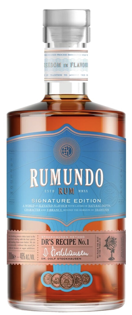 Ром Rumundo Signature Edition — премиальный золотистый ром крепостью 46%, разлитый в бутылке 0,7 л, созданный из сахарного тростника Ямайки и Доминиканской Республики. Благодаря уникальной технологии Stockhausen (древесная щепка вместо бочек) он ускоренно набирает глубину вкуса — отличный выбор для чистой подачи со льдом или коктейлей вроде Mai Tai.