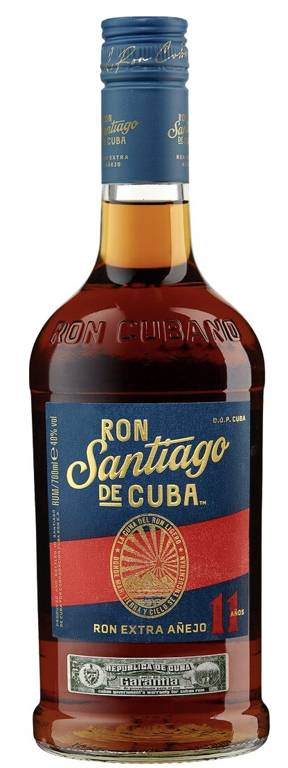 Ром Santiago de Cuba Extra Añejo 11 Años — премиальный кубинский ром супер-выдержанного класса крепостью 40%, объёмом 0,7 л. Создан из мелассы тростника региона Ориенте с 11-летней выдержкой в бочках белого дуба — магическая гармония сладости и силы, идеален чистым при 18–20°C как роскошный дижестив или с крепкими сигарами.
