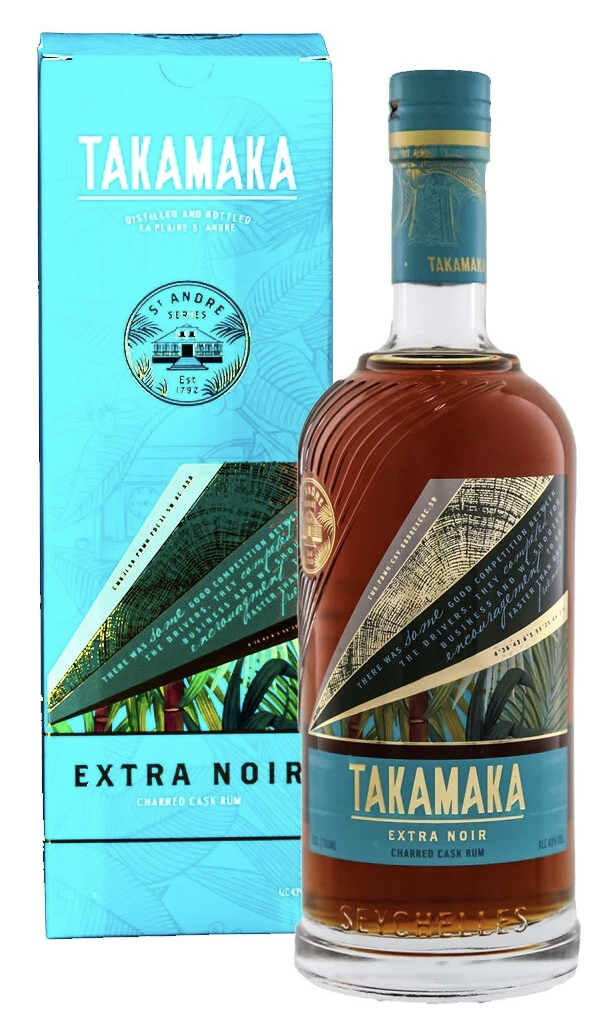 Ром Takamaka Extra Noir — насыщенный тёмный ром с Сейшельских островов крепостью 43%, разлитый в бутылке 0,7 л, часто в подарочной упаковке. Сбалансированный купаж из сока тростника с карамелью, выдержанный в дубе, он сочетает тропическую сладость с пряной глубиной — идеален чистым со льдом или в коктейлях вроде Rum Old Fashioned.