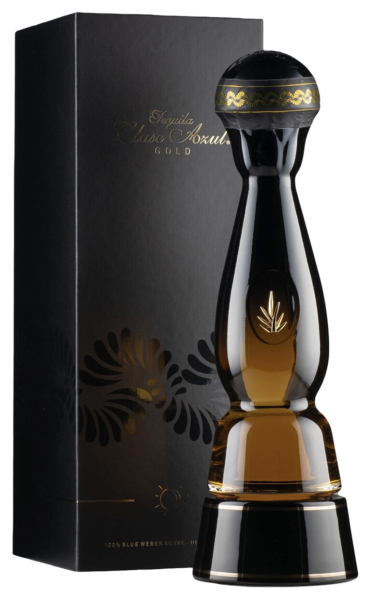 Текила Clase Azul Gold — роскошная премиальная текила joven (смешанная выдержка) из 100% голубой агавы крепостью 40%, объёмом 0,7 л, в золотом графине с чёрной керамикой ручной работы — символ роскоши и мексиканского искусства. Это уникальный купаж Plata, Reposado (во французском дубе) и Extra Añejo (в бочках из-под бурбона и хереса) — янтарно-золотая, многогранная и элегантная, идеальна при 15–16°C чистой как дижестив для коллекционеров и особых поводов.