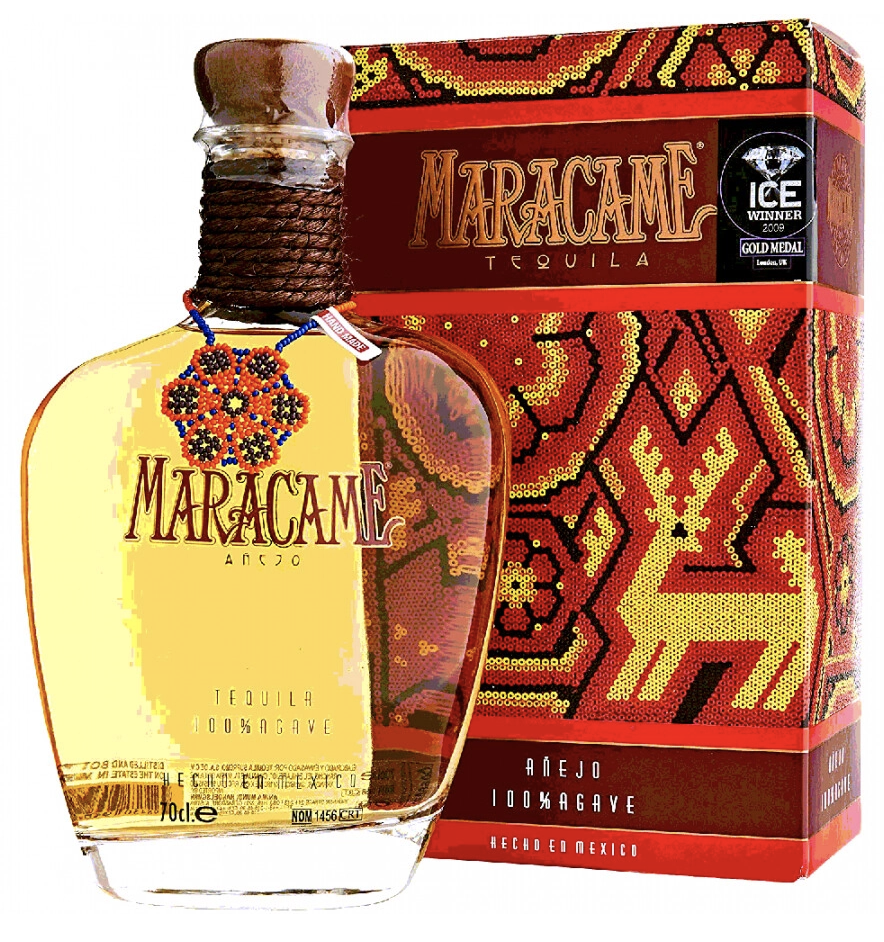 Текила Maracame Anejo — премиальная выдержанная текила из 100% сока голубой агавы, крепостью 40%, объёмом 0,7 л, часто в подарочной упаковке с ручной индейской росписью. Созданная по древним традициям племени уичоль, она выдерживается 18–24 месяца в дубовых бочках — элегантная, насыщенная и многогранная, идеальна чистой при 18–20°C без соли и лайма как дижестив для ценителей аутентичного мексиканского шарма.