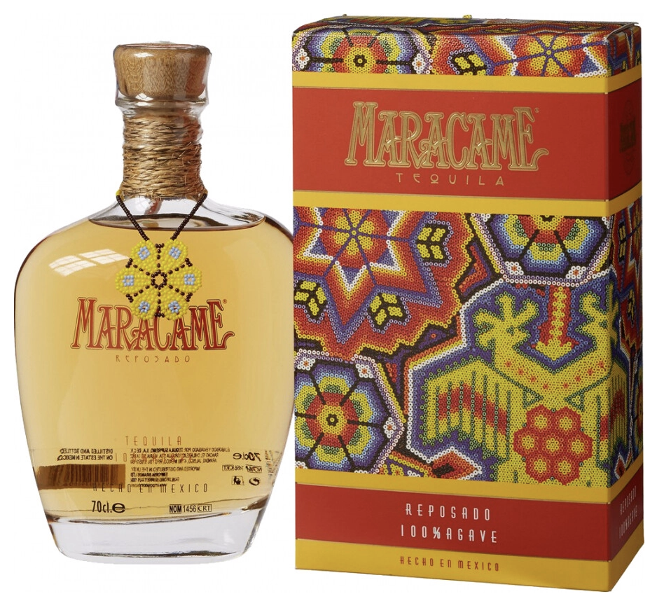 Текила Maracame Reposado — премиальная выдержанная текила из 100% голубой агавы Вебер, крепостью 40%, объёмом 0,7–0,75 л, часто в подарочной упаковке с ручной росписью индейцев уичоль. Выдержана 9 месяцев в дубовых бочках на высокогорье Халиско — золотистая, мягкая и ароматная, идеальна чистой при 18–20°C без соли/лайма или в коктейлях вроде Margarita для ценителей аутентичного мексиканского шарма.