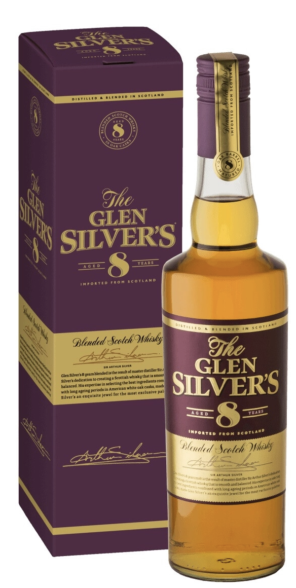 Виски Glen Silver's Blended Scotch 8 Years Old — это сбалансированный купажированный шотландский виски из спиртов Спейсайда и Хайленда, разлитый в бутылке 0,7 л с крепостью 40%, часто в подарочной упаковке. Выдержанный не менее 8 лет в бочках американского дуба, он сочетает дымные и солодовые ноты с древесной мягкостью — отличный вариант для чистой подачи или коктейлей вроде Rob Roy.