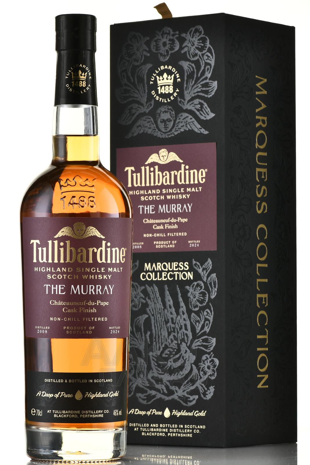 Виски Tullibardine The Murray Chateauneuf-du-Pape Finish — эксклюзивный хайлендский односолодовый шотландский виски из коллекции Marquess, посвящённой Уильяму Мюррею, маркизу Туллибардина (1689–1746). Спирты 2005/2008 годов выдержаны в бочках ex-bourbon, затем финиш в редких бочках Château de Nalys Châteauneuf-du-Pape, бутилирован при 46% ABV без холодной фильтрации. Глубокий красно-рубиновый цвет — мощное сочетание тёплого солодового стиля Tullibardine с винной фруктовостью Роны.