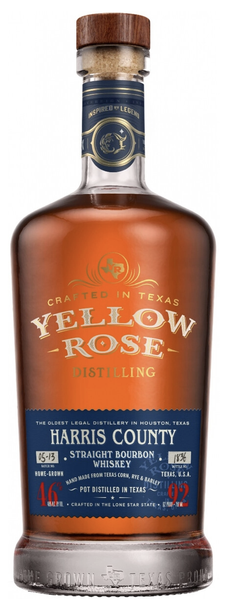 Yellow Rose Distilling — первая частная винокурня в Хьюстоне, открыта в 2010 году. Смесь: жёлтая кукуруза, рожь Elbon (25%) и солодовый ячмень San Jacinto — всё выращено в Техасе. Пот-стилл дистилляция, ручной контроль, без красителей; доля ангелов 15% в год из-за экстремальной жары.